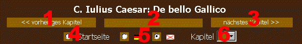 | 6 | Kapiteleinzelauswahl: Jedes Kapitel aus dem 1. Buch Caesar's kann durch dieses Menü leicht gewählt werden. |